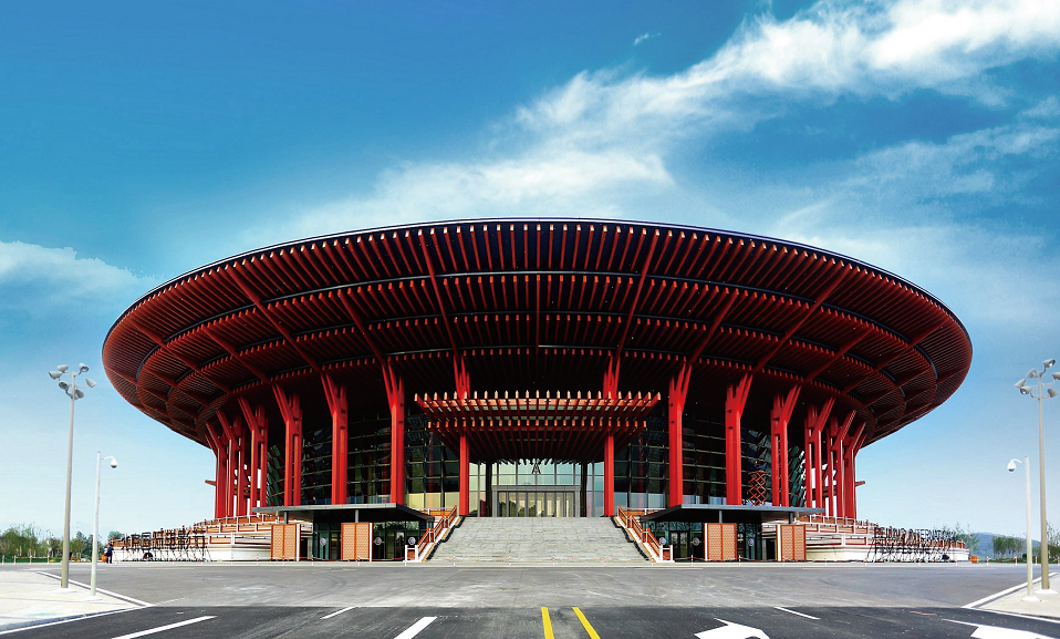 由上海寶冶參建的北京雁棲湖國際會展中心位于雁棲湖生態發展示范區,整體結構造型優美,似天壇無蓋,寓意天圓,將古典東方之美和現代化氣息有機結合,是雁棲湖國際會都兩大主體部分重要組成,是懷柔區標志性建筑之一。項目成功舉辦2014年亞太經合組織(APEC)領導人會議、2015年第五屆北京國際電影節開閉幕式、2017年“一帶一路”國際合作高峰論壇等重要活動。